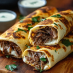 Indulge in the ultimate comfort food with these French Dip Tortilla Roll Ups! Crispy on the outside and gooey on the inside, these roll ups are loaded with tender roast beef and melted cheese, making them a crowd-pleaser for any occasion. Perfect for busy weeknight dinners or casual get-togethers, they take just 25 minutes to prepare and can be easily customized to suit your taste. Serve them with a rich and savory au jus for dipping, and watch as they become a family favorite. Whether you’re looking to meal prep or simply enjoy a delicious snack, these roll ups are sure to impress!
