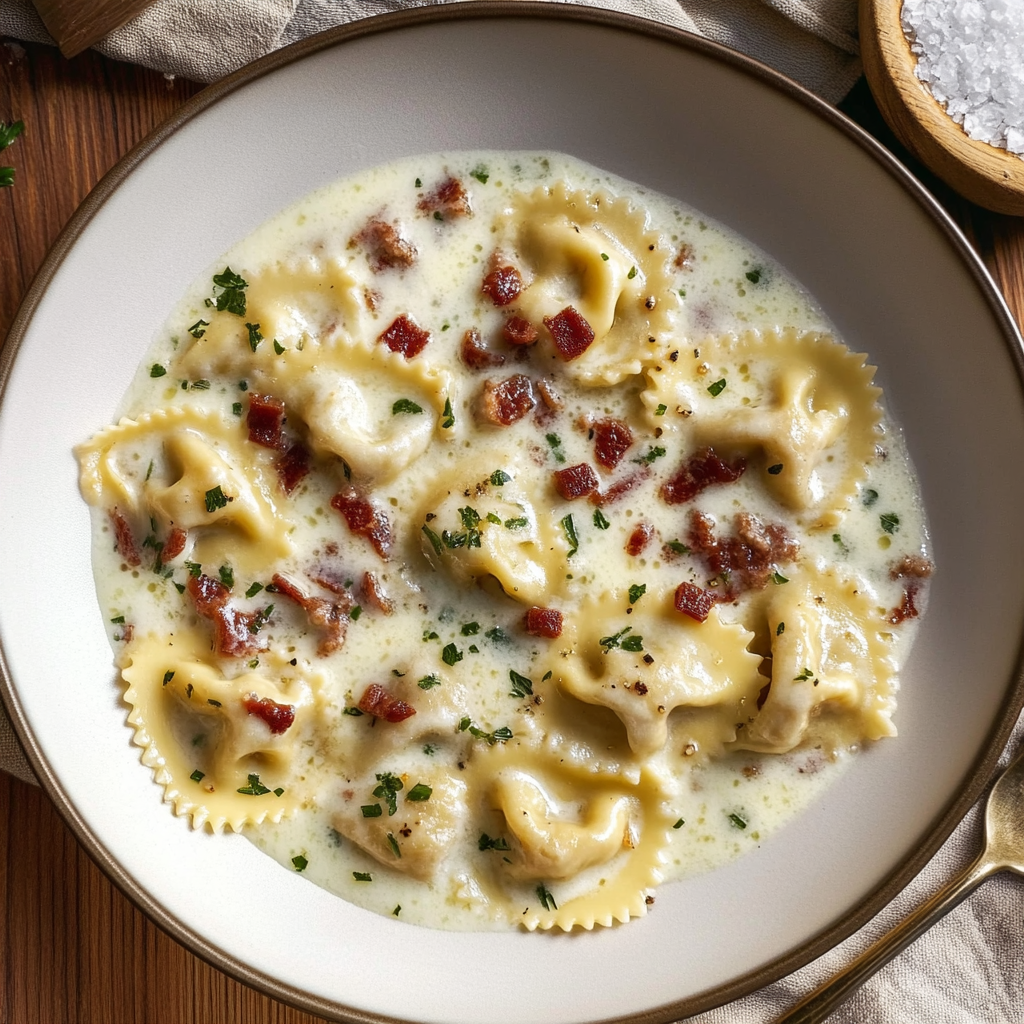 And there you have it—a delightful bowl of Olive Garden-Inspired Ravioli Carbonara that’s sure to impress everyone at your table! Enjoy every creamy bite!